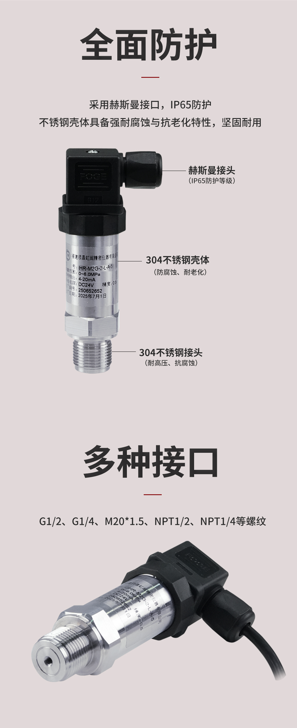 虹潤公司是專業(yè)生產(chǎn)壓力變送器的國家專精特新“小巨人”企業(yè),生產(chǎn)的小巧型壓力變送器,具有采用進(jìn)口芯體,量程范圍寬,抗沖擊抗震動,多種螺紋接口,性能穩(wěn)定等特點。產(chǎn)品獲得一種數(shù)字顯示低功耗壓力表、一種信號發(fā)生器裝置等2項國家發(fā)明專利,主持起草工業(yè)過程控制系統(tǒng)用模擬輸入兩位或多位輸出儀表、工業(yè)過程測量和控制系統(tǒng)用壓力/差壓變送器等2項國家標(biāo)準(zhǔn),通信系統(tǒng)多通道數(shù)據(jù)采集控制終端規(guī)范軍用標(biāo)準(zhǔn),以及現(xiàn)場設(shè)備集成等5項智能制造國家標(biāo)準(zhǔn),參與國際5G標(biāo)準(zhǔn)制定,取得數(shù)顯壓力表等2項相關(guān)軟件著作權(quán)。產(chǎn)品廣泛應(yīng)用于化工、食品、制藥、電力、設(shè)備配套、供暖、水處理、樓宇等行業(yè),需精準(zhǔn)測量流體壓力的現(xiàn)場。