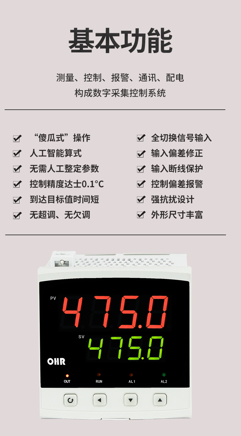 虹潤公司是專業(yè)生產溫控器的國家專精特新“小巨人”企業(yè)。生產的傻瓜式智能溫控器,具有傻瓜式操作,真正人工智能算式,無需人工整定參數,控制精度可達±0.1°C,高抗干擾等特點。產品獲得模糊PID控制儀及控制方法、人工智能調節(jié)器、智能化控制器、移相觸發(fā)控制器、閥門自動手動無擾動操作控制方法及裝置等5項國家發(fā)明專利,主持起草工業(yè)過程控制系統(tǒng)用模擬輸入兩位或多位輸出儀表、物聯(lián)網智能溫度儀表通用技術條件、工業(yè)過程測量和控制系統(tǒng)用智能調節(jié)器等3項國家標準,以及通信系統(tǒng)多通道數據采集控制終端規(guī)范軍用標準,參與國際5G標準制定,取得傻瓜式模糊PID調節(jié)儀等3項相關軟件著作權。產品廣泛應用于電力、石化,冶金、制藥、食品等幾乎所有工業(yè)現場,實現精準控溫,保障生產安全與質量。