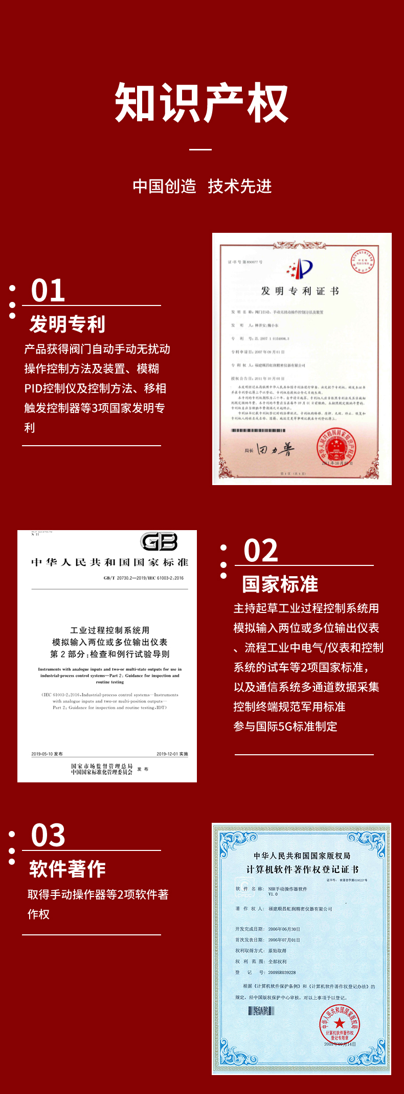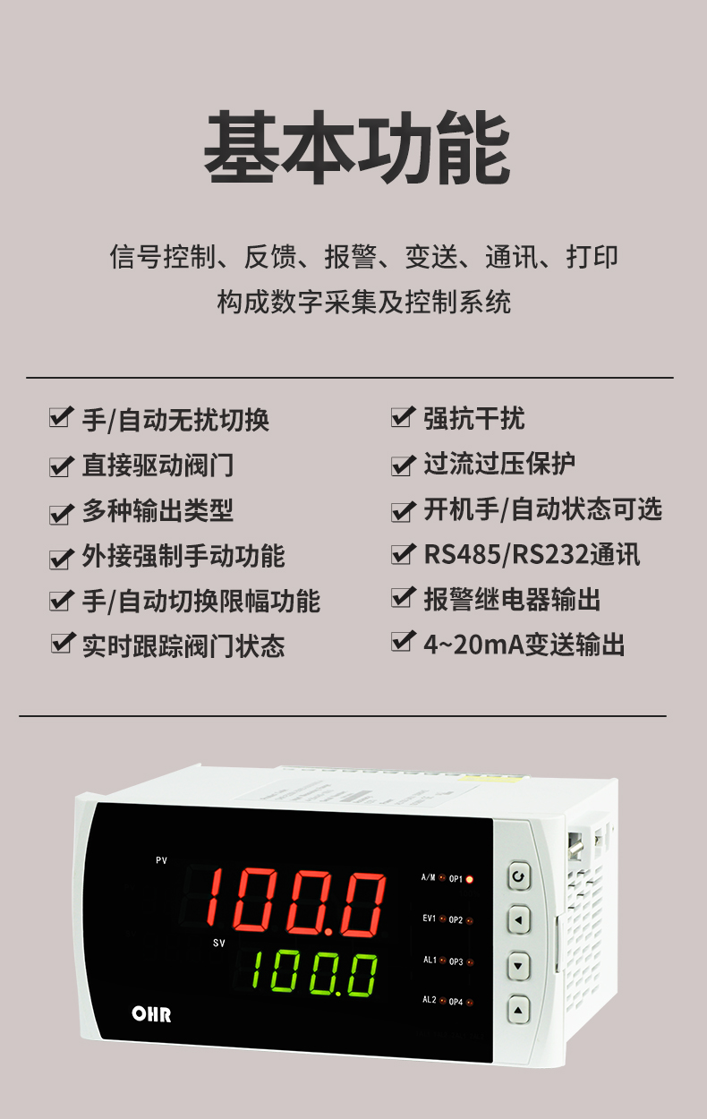 虹潤公司是專業(yè)生產(chǎn)智能手操器的國家專精特新“小巨人”企業(yè),生產(chǎn)的手動(dòng)操作器,具有手自動(dòng)無擾切換,直接調(diào)節(jié)閥門,多種輸出類型,外接強(qiáng)制手動(dòng)功能,高抗干擾等特點(diǎn)。產(chǎn)品獲得閥門自動(dòng)手動(dòng)無擾動(dòng)操作控制方法及裝置、模糊PID控制儀及控制方法、移相觸發(fā)控制器等3項(xiàng)國家標(biāo)準(zhǔn),主持起草工業(yè)過程控制系統(tǒng)用模擬輸入兩位或多位輸出儀表、流程工業(yè)中電氣/儀表和控制系統(tǒng)的試車等2項(xiàng)國家標(biāo)準(zhǔn),以及通信系統(tǒng)多通道數(shù)據(jù)采集控制終端規(guī)范軍用標(biāo)準(zhǔn),參與國際5G標(biāo)準(zhǔn)制定,取得手動(dòng)操作器等3項(xiàng)相關(guān)軟件著作權(quán)。產(chǎn)品廣泛應(yīng)用于電力、石化、冶金、化工、造紙、食品、輕工、制藥、熱處理、水處理、機(jī)械配套等各種工業(yè)現(xiàn)場。