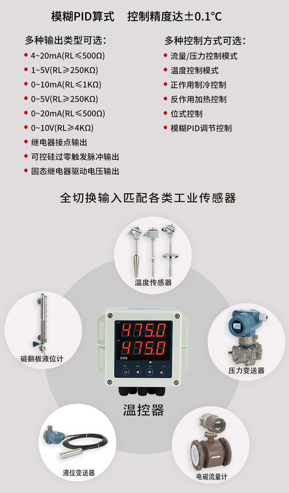 虹潤公司是專業(yè)生產(chǎn)溫控器的國家專精特新“小巨人”企業(yè)。生產(chǎn)的壁掛式PID溫控器,具有全切換信號輸入,真正人工智能算式,控制精度達士0.1°C,防護等級高,RS485通訊輸出DN等特點。產(chǎn)品獲得模糊PID控制儀及控制方法、人工智能調(diào)節(jié)器、智能化控制器、移相觸發(fā)控制器、閥門自動手動無擾動操作控制方法及裝置等5項國家發(fā)明專利,主持起草主持起草工業(yè)過程控制系統(tǒng)用模擬輸入兩位或多位輸出儀表、物聯(lián)網(wǎng)智能溫度儀表通用技術(shù)條件、工業(yè)過程測量和控制系統(tǒng)用智能調(diào)節(jié)器等3項國家標準,以及通信系統(tǒng)多通道數(shù)據(jù)采集控制終端規(guī)范軍用標準。參與國際5G標準制定,取得傻瓜式PID調(diào)節(jié)儀等3項相關(guān)軟件著作權(quán)。產(chǎn)品廣泛應用于電力、石化,冶金、制藥、食品等幾乎所有工業(yè)現(xiàn)場,實現(xiàn)精準控溫,保障生產(chǎn)安全與質(zhì)量。