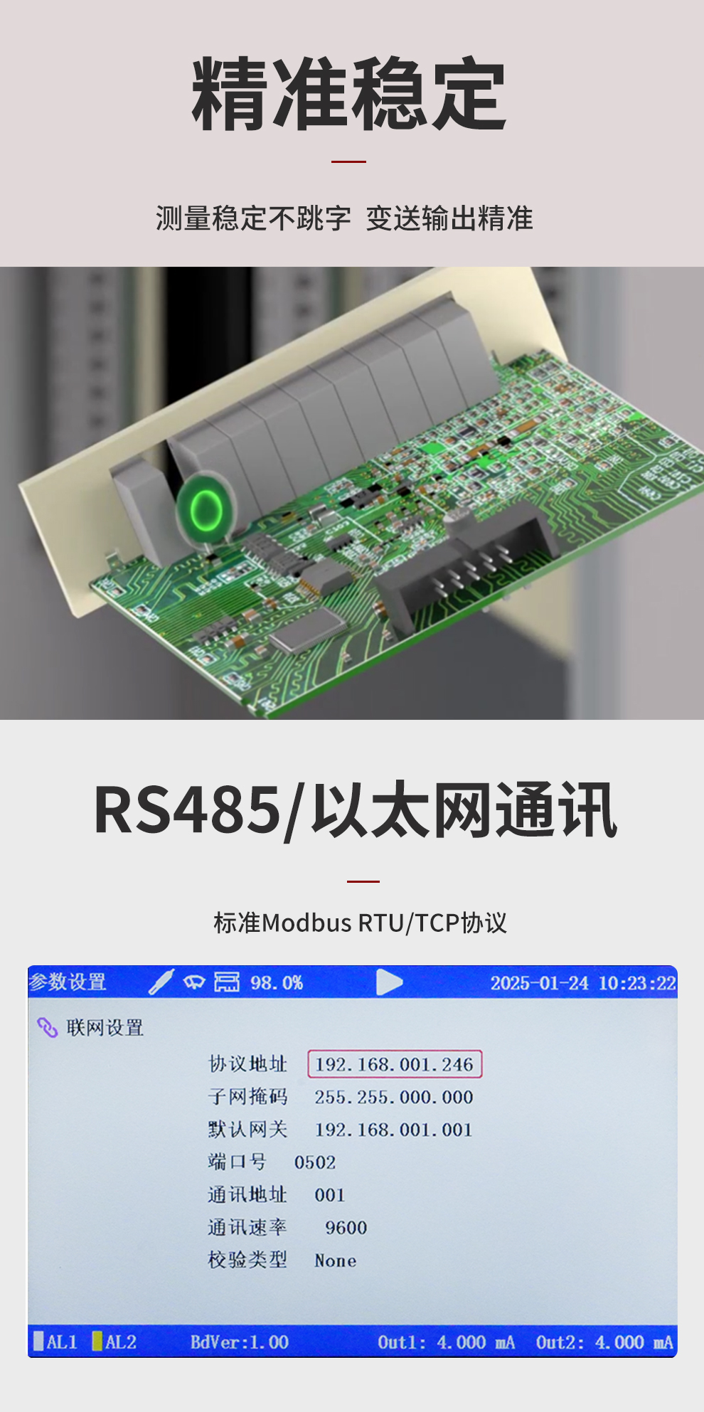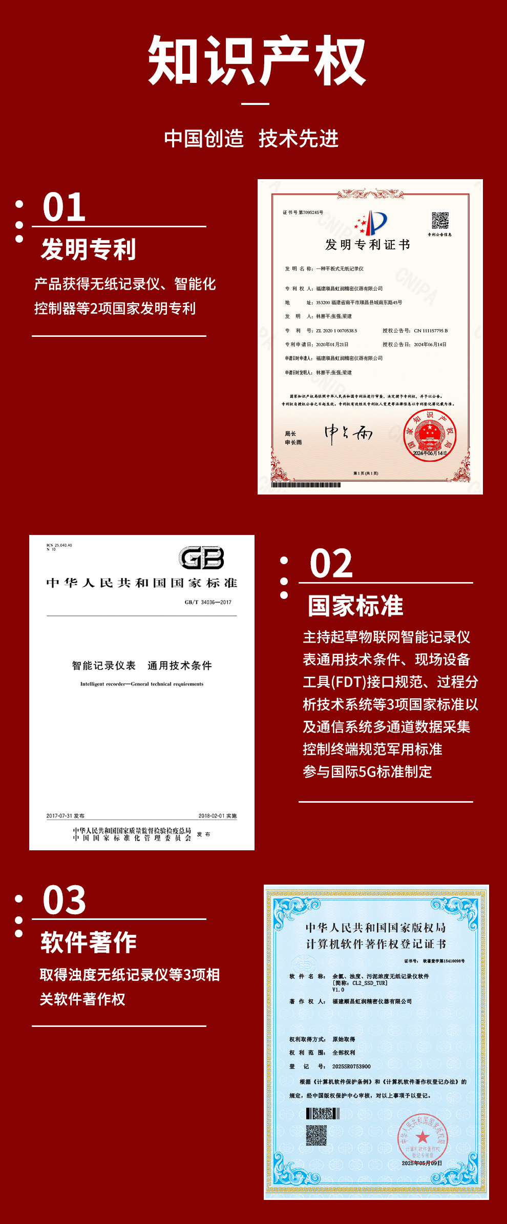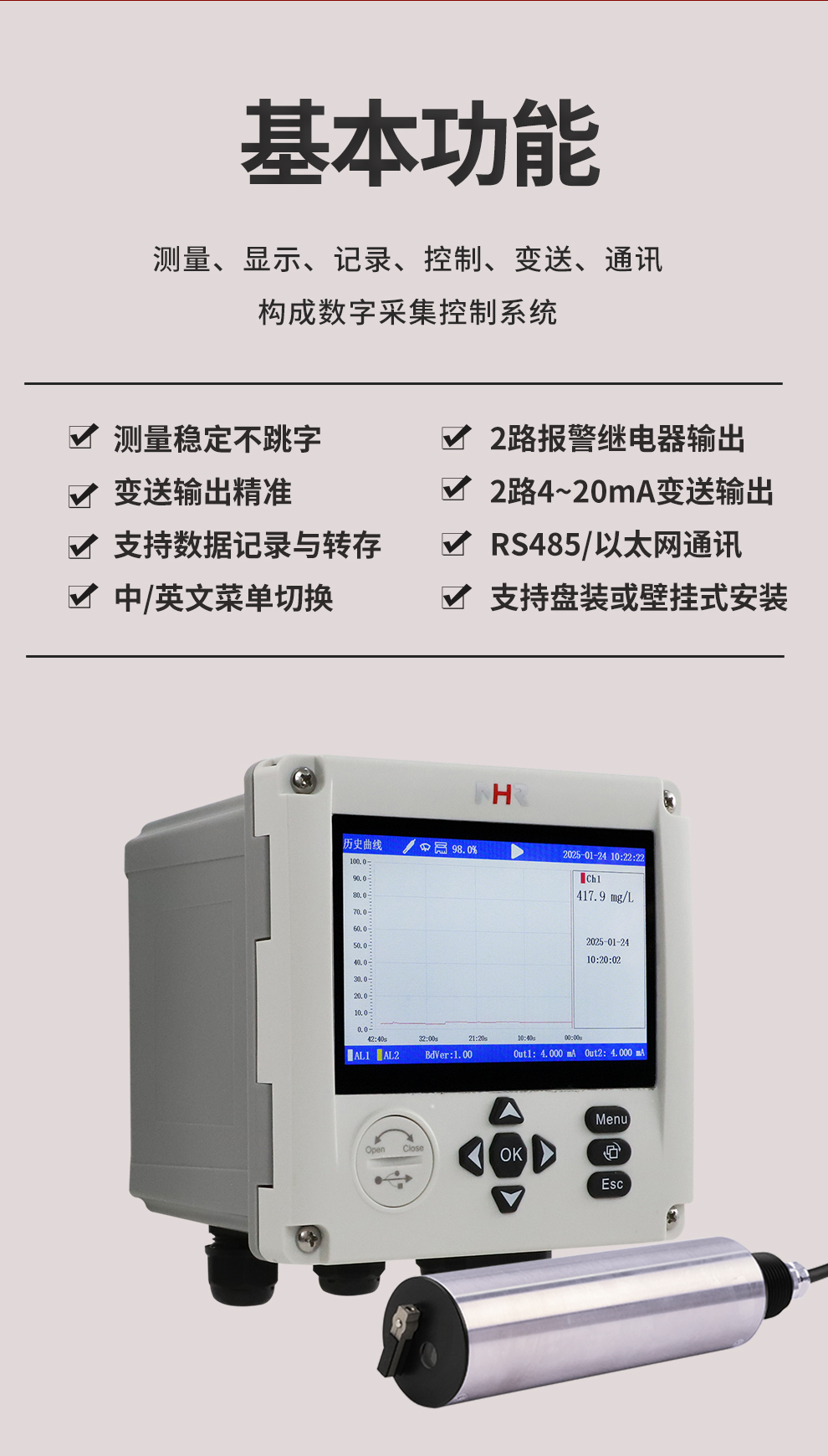 虹潤公司是專業(yè)生產水質分析儀的國家專精特新“小巨人”企業(yè)。生產的濁度/污泥記錄儀,具有彩色大屏顯示,測量精準穩(wěn)定不跳字,數(shù)據(jù)記錄與轉存,RS485/以太網通訊,配套上位機管理軟件等特點。產品獲得一種平板無紙記錄儀、智能化控制器等2項國家發(fā)明專利;主持起草物聯(lián)網智能記錄儀表通用技術條件、現(xiàn)場設備工具(FDT)接口規(guī)范.、過程分析技術系統(tǒng)等3項國家標準,以及通信系統(tǒng)多通道數(shù)據(jù)采集控制終端規(guī)范軍用標準,參與國際5G標準制定;取得濁度、污泥濃度無紙記錄儀等3項相關軟件著作權。產品廣泛應用于市政供水、污水處理、食品、制藥、造紙、石化、冶金、水處養(yǎng)殖等諸多領域。