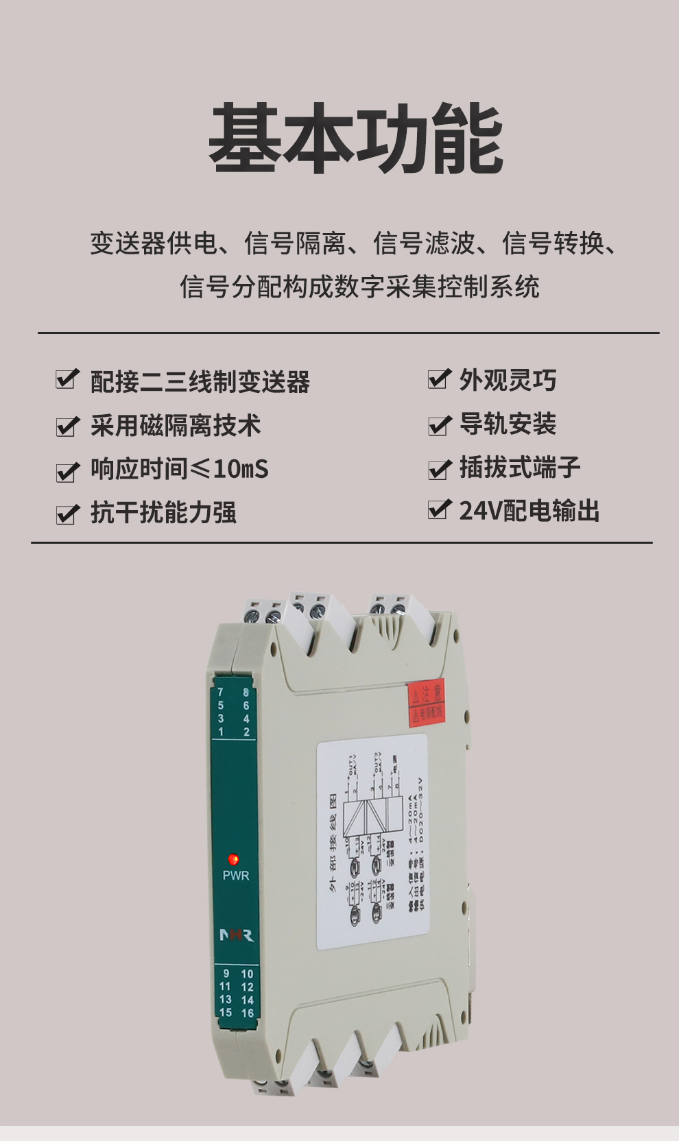 虹潤公司是專業(yè)生產隔離器的國家專精特新“小巨人”企業(yè)。生產的配電器,具有配接二三線制變送器,采用磁隔離技術,響應時間快,抗干擾能力強,24V配電輸出,性價比高等特點。該產品不僅通過德國萊茵 CE 認證與 SIL 功能安全認證,還獲得信號隔離器、二端子模塊、無源信號隔離器等3項國家發(fā)明專利,主持起草現(xiàn)場設備工具(FDT)接口規(guī)范、工業(yè)過程測量和控制系統(tǒng)用隔離式安全柵、工業(yè)過程測量和控制系統(tǒng)用配電器等3項國家標準,以及通信系統(tǒng)多通道數(shù)據采集控制終端規(guī)范軍用標準,參與國際5G標準制定。產品廣泛應用于石油、化工,冶金、電力、食品、光伏能源、污水處理等需要電隔離的工業(yè)自動化控制系統(tǒng)。